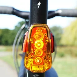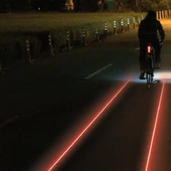 Sa puissance d’éclairage est de 250 Lumens maximum. Il dispose de plusieurs modes de luminosité pour permettre d’être vu dans diverses conditions de circulation. Il se distingue plus particulièrement par son mode de diffusion laser au sol (projecteur laser sans risque d’éblouissement pour les conducteurs à l’arrière).