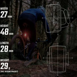 La lampe arrière Sigma Buster RL 80 a une autonomie de 7 heures avec une recharge par USB (câble inclus). Elle vous permettra d’être vu jusqu’à 1500 mètres, ce qui en fait un élément de sécurité idéal pour faire du vélo sur la route, de nuit comme de jour.